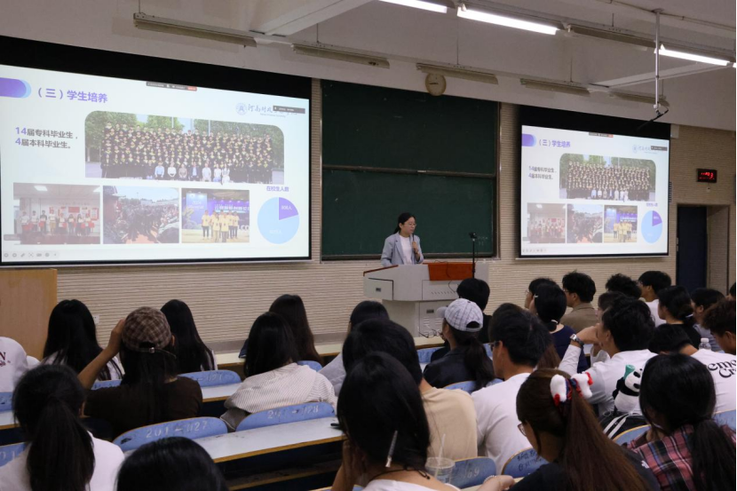 在学业规划上,朱院长融合新生入学测评与学业评定结果,为大家提供了针对性建议。她着重强调:“大学学习需实现从“被动接收”到“主动钻研”的转变。学院将通过推行导师制、项目制等有效形式,有力支持同学们挖掘自身潜能,补齐发展短板。”朱院长还特别提醒新生:“要尽早明确发展目标,积极参与科研项目和学科竞赛,全方位提升自身综合素养。”